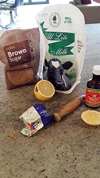 Boil 1 cup of light brown sugar with 2 tablespoons milk and 1tablespoon butter for 4 minutes.