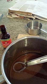 Boil for 5 minutes. When off the stove beat in 2 teaspoons of vanilla essence.